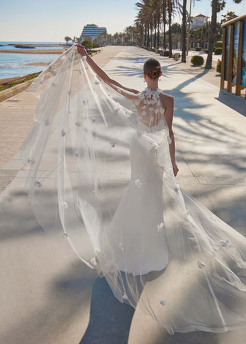 Voile en tulle agrémenté de petites fleurs en mousseline et organza.